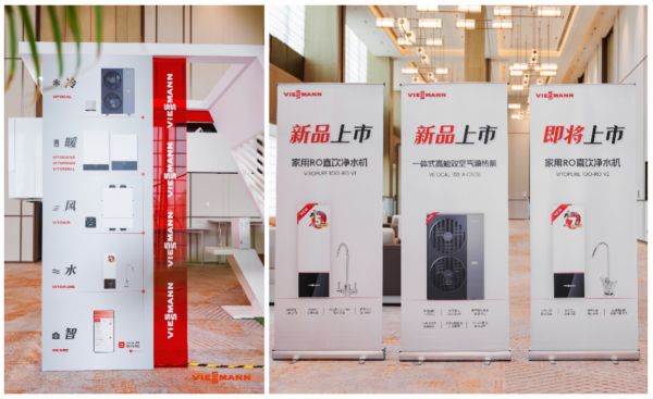 菲斯曼“冷、暖、风、水、智”舒适家居解决方案的产品战略在本次南通站新品推介会展区体现尤为明显。除同步展示冷凝燃气采暖热水炉、零冷水燃气热水器Vitowell 系列等产品外,菲斯曼新一代一体式空气源热泵Vitocal 100-A CN (S)与家用直饮净水机Vitopure 100-RO V1成为本次推介会展台焦点。