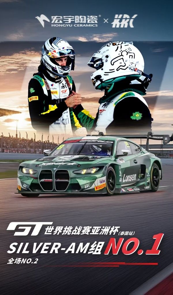 近日,GT世界挑战赛亚洲杯圆满落幕。由宏宇陶瓷赞助的KRC车队表现亮眼,斩获Silver-AM组别冠军,全场亚军的好成绩,以优异成绩再度印证“速度与实力”的硬核标签。