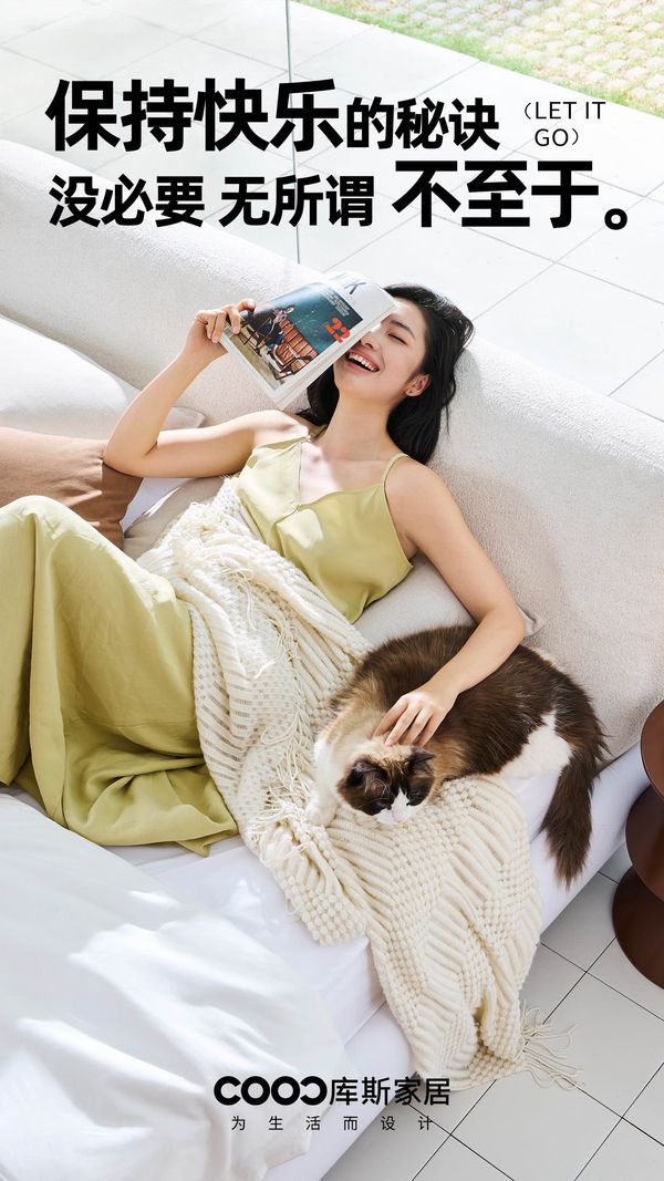 以用户身心松弛感为核心,行业首创松弛美学,从时尚、松弛、乐趣三重维度重构品牌DNA。焕新后的库斯家居,把产品作为生活质感的延伸,实现从功能满足到情绪共鸣。库斯家居鼓励用户不被标准化审美所束缚,自由听从内心的选择,将时尚作为一种生活态度;通过产品设计营造出自然、舒适、无压力的居家氛围,让家成为回归自我的舒适空间,倡导松弛的生活方式;还通过产品微创新,增加生活灵感,引导用户重拾生活乐趣。