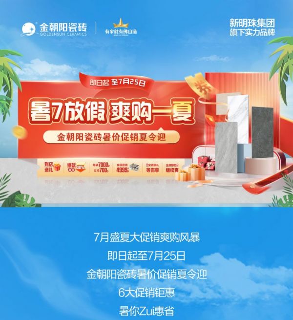 暑7放假 爽购一夏 | 金朝阳瓷砖暑价促销夏令迎 全屋套餐指定瓷砖4999元起!