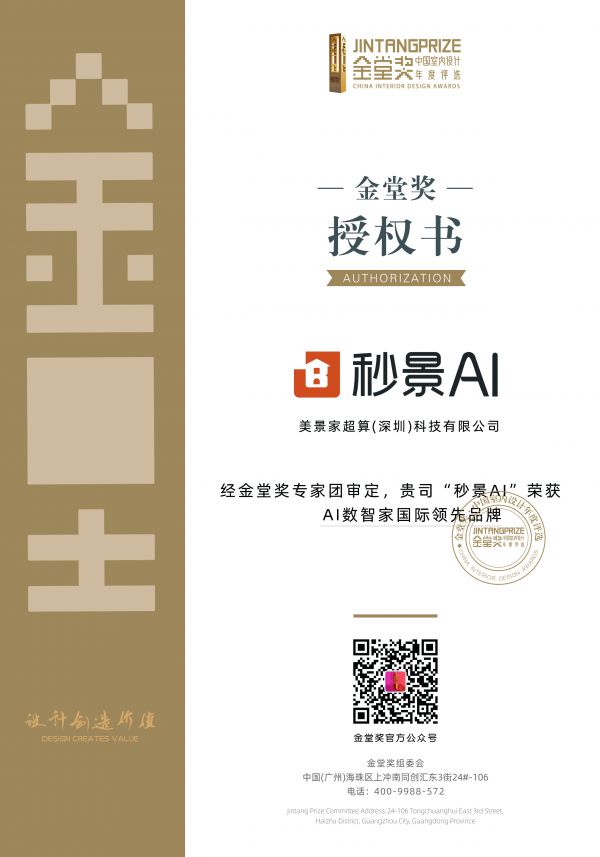 同时,经金堂奖全球评委团认真严谨测试,秒景AI被正式授予“AI数智家国际领先品牌”的荣誉称号!