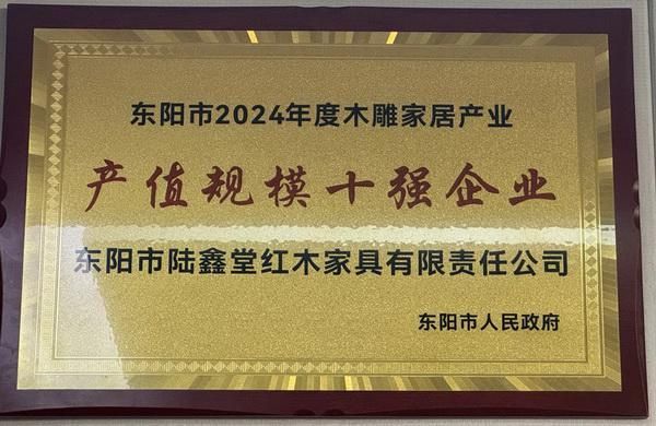 十余年来,喜迎红红木坚守高端品质与匠心服务,在40000+㎡标准厂房中践行严苛工艺,用持续的创新力赢得行业认可——近日,喜迎红红木荣获东阳市2024年度木雕家居产业“产值规模十强企业”。除此之外,喜迎红红木也曾取得了一系列荣誉:包括“红木家具十大受欢迎品牌”、“红木家具十大匠心口碑品牌”、“东阳市木雕红木家具龙头骨干企业”、“东阳市示范红木企业”、“绒毛黄檀家具热门品牌”等,这份成绩单的背后,是对“红木不止于传统,更要懂现代”的深刻践行。