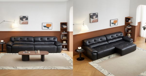 真皮鹅毛沙发,澜夜黑配色深邃大气,诠释复古格调;外观饱满方正,简而有型。1.5mm加厚头层牛皮,手感细腻柔滑,厚实柔韧,尽显高级气质。座包、靠包与扶手全部位面层覆盖鹅毛,蓬松轻盈,带来悬浮式云感般的舒适体感。座包复合承托,四层不同密度恒压高弹海绵科学配比,舒适层次递进。大座深搭配L型倾斜靠背,包容各种休闲姿态,让身体尽情舒展。