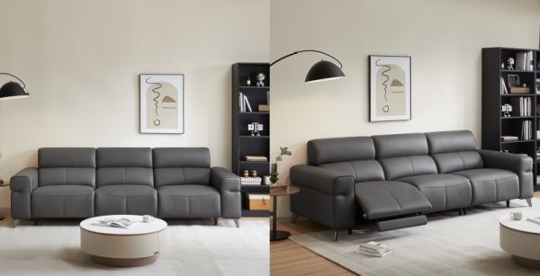 零重力真皮沙发,沉稳深空灰配色,挺括饱满外形,简约经典。满分坐靠系统,饱满分段式靠包,十区贴合身体,每一寸都舒适。电动功能位110°-160°无极调控,随心调节至最佳角度。高品质功能机架,配备USB接口,一键控制更便捷。0靠墙设计,功能位向前展开,节约空间。电动功能位放平,心脏与膝盖持平,营造悬浮太空感,让身体持续放松。
