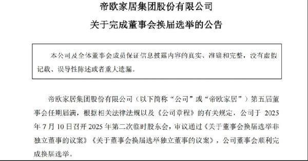 近日,鉴于第五届董事会任期已满,帝欧家居集团股份有限公司再次迎来了三年一次的例行换届。这次换届后,帝欧家居董事会已物是人非,董事长相应换位实则必然。