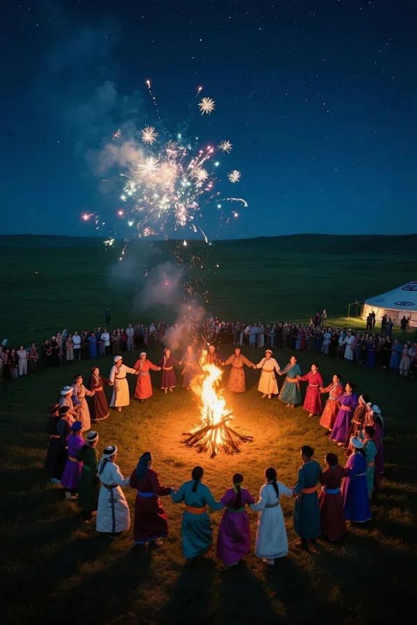 篝火狂欢:夜幕降临,草原上的篝火准时燃起,围绕着篝火载歌载舞、分享喜悦、畅谈人生,感受草原夜晚独有的热闹与温馨。