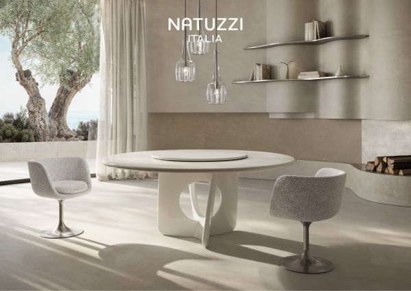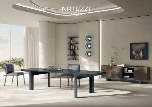 这种设计理念亦延伸至同系列的起居与餐厨单品——包括一张极简、多功能的餐桌,以及一款融合有机与理性线条的现代感餐边柜,展现 Natuzzi Italia 在“美学”与“生活功能性”之间的平衡与探索。