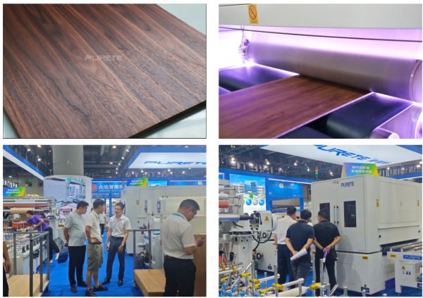 2025年7月8日至11日,广东瀚秋普瑞特携全新升级的涂饰一体解决方案完美收官广州建博会。此次参展,普瑞特直面行业核心客群,现场演示三大设备:UV同步压纹、三面宽板包覆和异型喷漆机。此次展示的不仅是升级产线,更是直击行业痛点的系统解决方案。