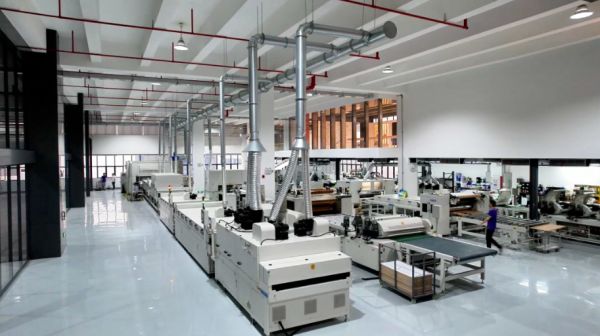 展会上最受瞩目的是普瑞特自主研发的涂饰仿真同步压纹生产线。普瑞特采用靠档/对中结构和光学元件实现精准定位,使3D压纹和打印图案纹理对齐误差控制在±0.2mm,较传统工艺提升5倍精度。