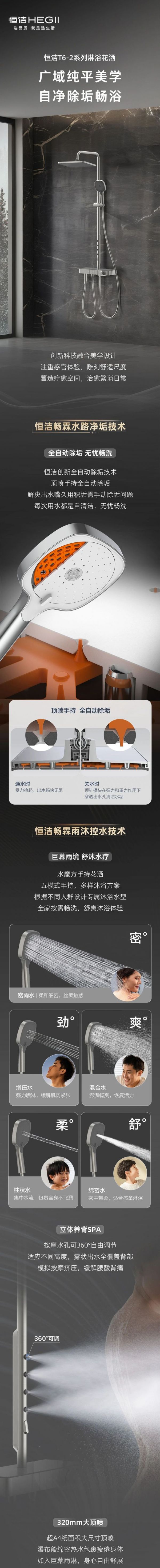 新品上市 | 恒洁T6-2系列淋浴花洒,自净除垢,沉浸畅浴