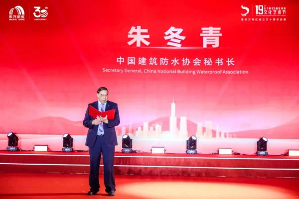 中国建筑防水协会秘书长朱冬青代表行业协会致辞,高度评价东方雨虹三十年来为中国建筑防水事业做出的卓越贡献。他指出东方雨虹不仅发挥行业标杆作用,在技术标准制定与产品质量提升方面树立典范,更在推动行业整体健康发展、提升行业水平方面功不可没。朱冬青秘书长对东方雨虹未来发展寄予厚望,期待东方雨虹继续引领中国建筑防水行业迈向更高水平,并在全球舞台展现中国品质。