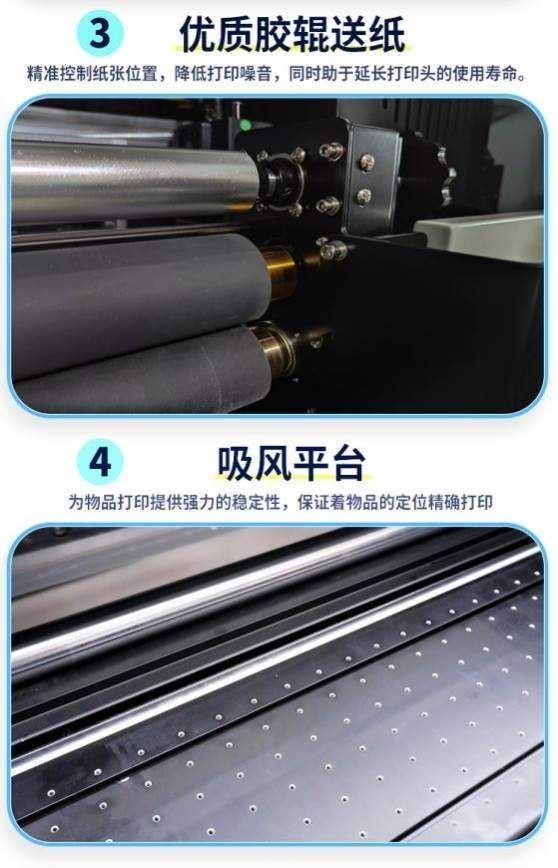 吸风式打印平台: 确保进料平稳,提供强力支撑,保证打印定位精准。