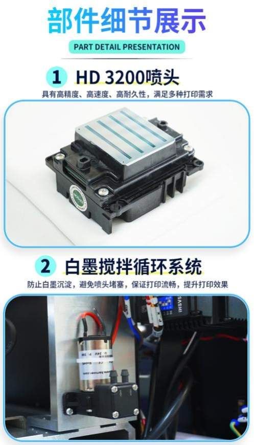 白墨搅拌系统: 防止沉淀,避免堵头,保障打印流畅,延长喷头寿命。