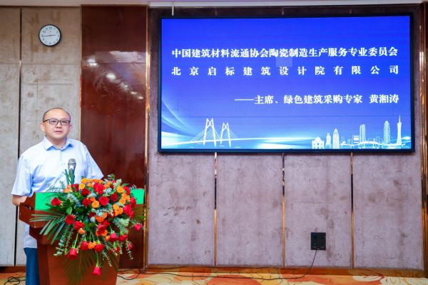 中国建筑材料流通协会、陶瓷卫浴制造商委员会主席、北京启标建筑设计院有限公司绿色建筑采购专家黄湘涛在会上发表讲话。他从行业宏观角度分析了智能镜柜的市场前景,并指出:“团体标准的发布将推动智能镜柜与整体卫浴场景的深度融合,为行业的技术创新和品质升级注入新动力。”