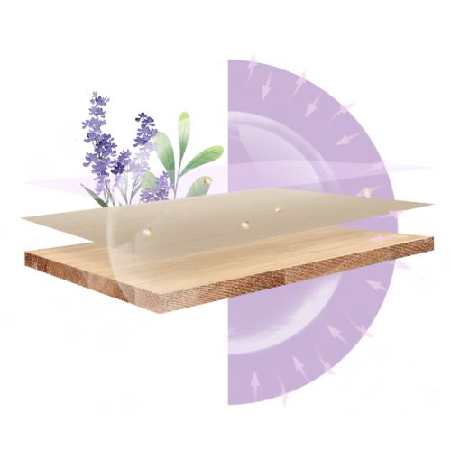 它彻底打破传统板材“仅作为装修材料”的单一属性,通过植物源长效释香技术,让板材成为自然香氛的隐形载体:精选的薰衣草香型含芳樟醇、乙酸芳樟酯、桉树脑等天然成分,经多人感官评测验证,不仅能清新空间空气,更能通过嗅觉传递舒缓信号,让家居场景超越居住本身,成为情绪疗愈的港湾。