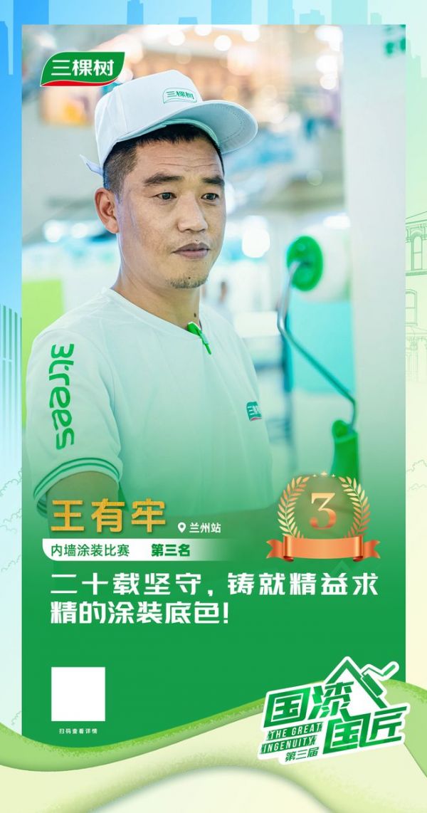 三棵树2025“国漆国匠”大赛兰州站内墙涂装铜牌匠人王有牢:二十载坚守,铸就精益求精的涂装底色!