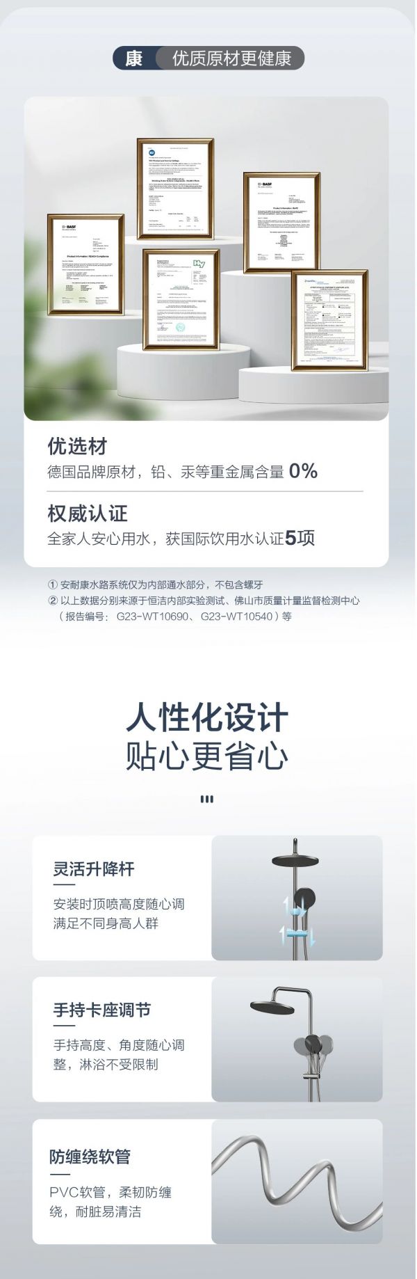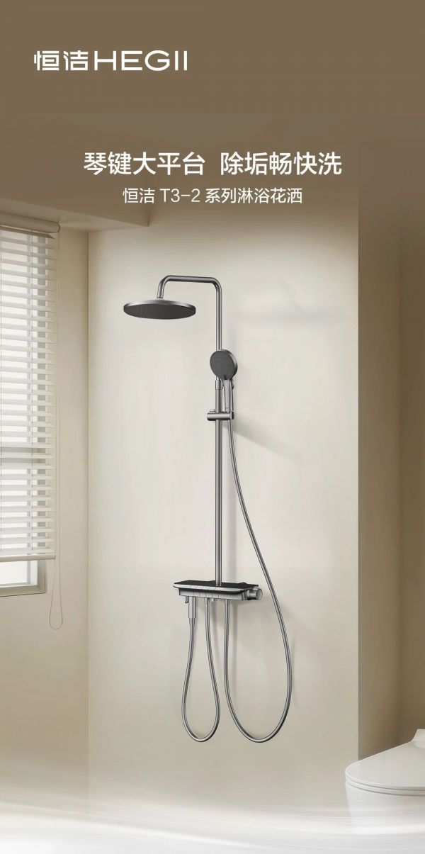 新品上市|恒洁T3-2系列淋浴花洒,琴键大平台,除垢畅快洗