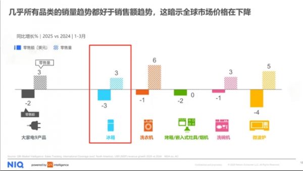 据GfK数据显示,2025年一季度全球冰箱销量有所增长但销额下降,反映出行业竞争的激烈。行业承压下,海尔却逆势崛起:
