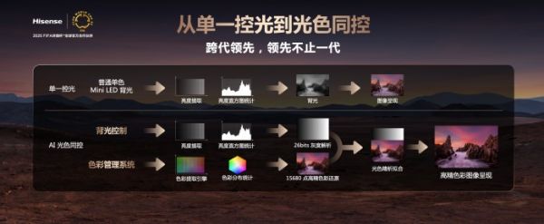 此外,该系列搭载的信芯AI画质芯片H7创新性实现AI光色同控,通过26bits灰阶控制与15680点位色彩管理系统,成功攻克高对比场景中暗部细节与高光层次难以平衡的技术难题。配合AI超清晰解构、人眼景深追焦等智能算法,可动态优化画面分辨率与景深表现,使2D影像呈现接近裸眼3D的立体观感,将杜比视界的画质潜力发挥到极致。