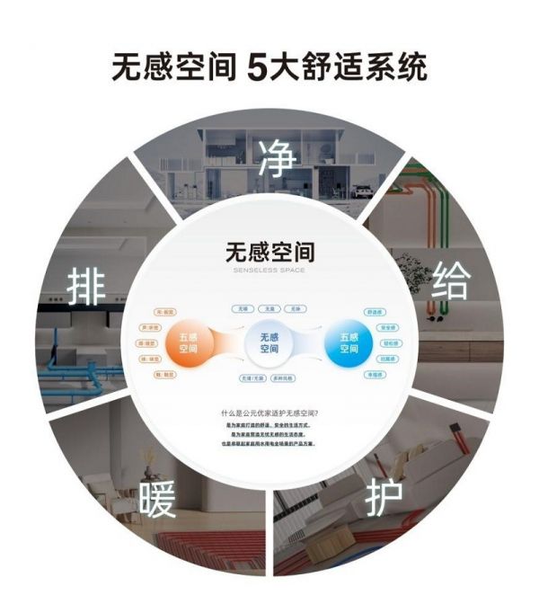 为了确保从理念到落地的完美闭环, 公元优家从视觉、听觉、嗅觉、味觉、触觉出发,打造了给排护暖净的“无感空间”,将漏、吵、臭、异、乱的“糟心五感”转化为“隐蔽无感”、将不关注、不在乎、不讲究等“意识无感”转化为“体验无感”,满足了用户对理想入居的真实期待。