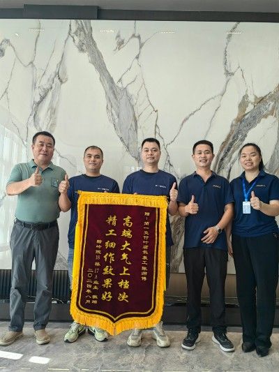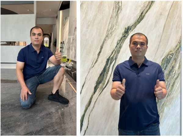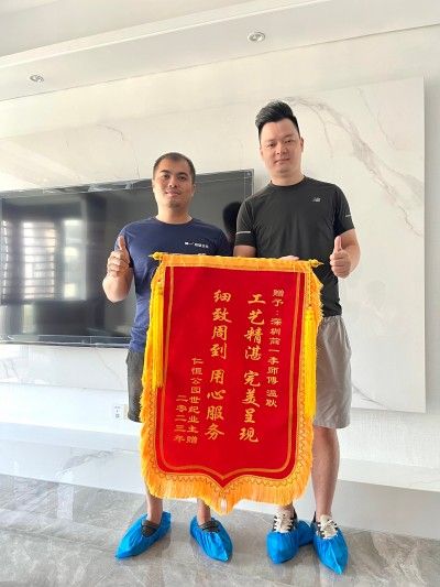 海德园的业主珊珊说:“铺贴工艺非常好,缝对缝的平整度超出我的想象”,那是他用炉火纯青的铺贴工艺,把0.35毫米的缝藏进纹理里,让地面像一整块浑然天成的石材;华侨城宝辰的业主蒋总感慨:“整体满分,效果完美落地,手艺耐心都有”,恰是他处理大面积铺贴时,一片一片对纹,让天然的脉络在地面自然舒展;深铁懿府三期的业主陈姐提到“超预期,效果非常满意,服务态度好,沟通能力强,细心负责任”,背后是他收尾时蹲在地上,用布把每块砖擦得发亮,连边角都没放过。