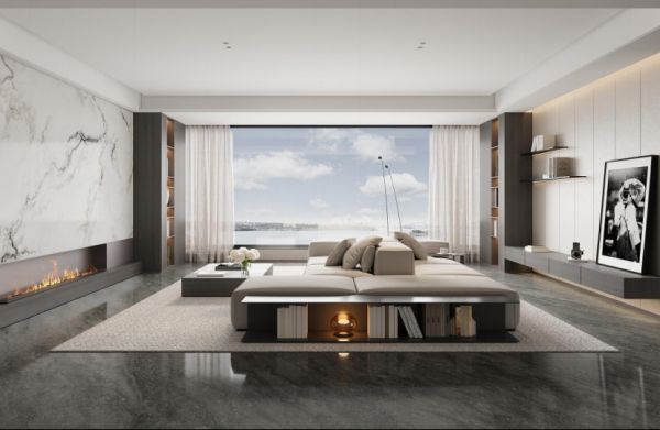 李土华推荐的“温德姆”,带着巴厘岛火山的沉敛气质。900x1800mm的大规格,让地面少了拼接的碎感,多了一气呵成的开阔;沉敛的灰调像火山喷发后的沉静地表,丝缕纹理如熔岩冷却时留下的脉络,藏着时光的厚重。