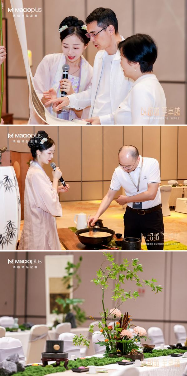 晚上,经销商们与玛格家居董事长唐斌先生、高定事业部副总经理孙超华先生等高层领导围坐一堂,共赏宋式四雅,在沉浸式文化体验中诠释“以家居定义品质生活”的品牌内涵。