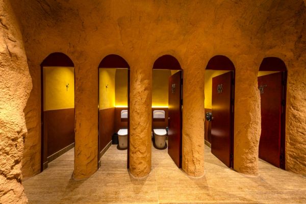 据了解,该项目对敦煌夜市“八景楼”进行功能再造,融合敦煌文化基因:一层以“莫高至善”为主题,二层则呈现“雅丹秘境”,营造雄浑奇幻的空间意境。步入其中,便能感受到敦煌文化与九牧卫浴产品的完美交融,一位来自北京的游客表示:“这和我印象中的公厕完全不一样,升级后的超白玻幕墙与毗邻的沙州楼形成震撼的 ‘古今对话’,夜幕降临时,灯光与幕墙交相辉映,宛如一座小型艺术馆。”