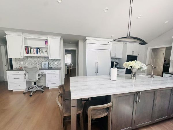 在硅谷这片以代码和效率著称的土地上,璐琳的家像一片温柔的绿洲。尤其那个巨大的厨房,更是整座房子的心脏和灵魂。这里没有冷冰冰的科技感,取而代之的是有质感的实木橱柜,以及空气里永远弥漫着的、令人安心的食物香气。最特别的是,一张配套的写字台,就与巨大的岛台并肩而立。键盘、剧本、散落的稿纸,与新鲜的蔬果、晶莹的调料瓶、闪着微光的厨具共享着同一个空间——这里是编剧虞璐琳创作与生活的双重舞台。