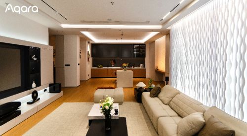 作为江苏首家旗舰级门店,南通 Aqara Space 在设计前期就融入了大量灯光与智能化演示场景,整体空间设计感鲜明,这体现了 Aqara 对智能生活方式的探索。