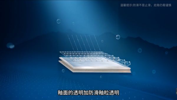 镜面防滑技术的核心,是欧神诺独家研发的“釉粒微融技术”。不同于普通防滑砖靠粗糙表面或后期涂层的妥协方案,欧神诺在传统透光保护釉基础上,直接将透明防滑釉粒融入其中。