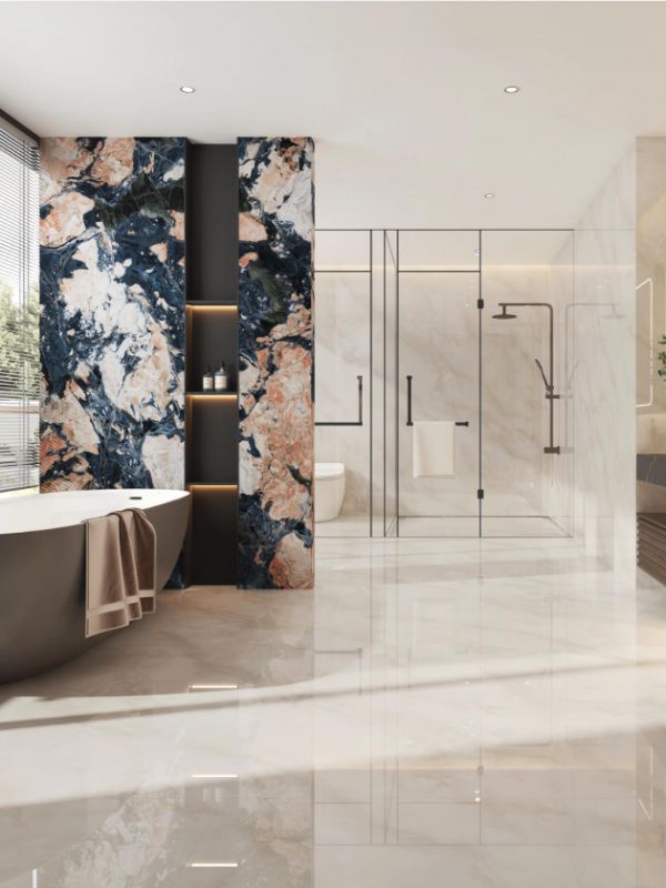 防滑之余更带来高端视觉体验,透明防滑釉粒完美呈现亮光通透效果,光线下能透出细微星芒光效,明亮开阔,美学层次瞬间提升,让每个空间都兼具实用性与高级感。