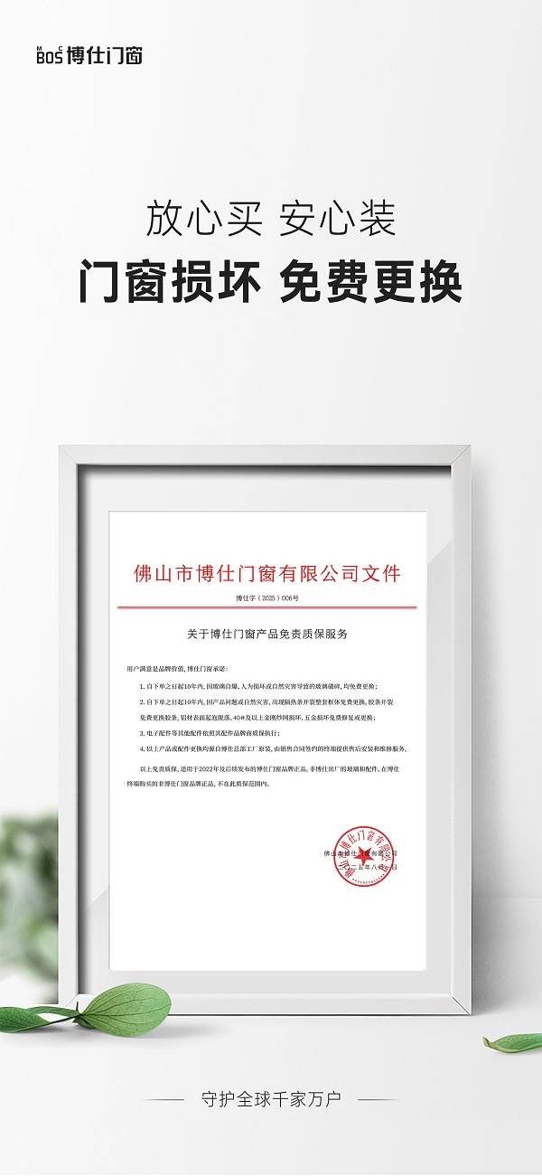 博仕门窗放大招:门窗损坏,免费更换!全场景覆盖更安心