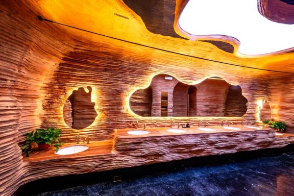 据了解,该项目对敦煌夜市“八景楼”进行功能再造,融合敦煌文化基因:一层以“莫高至善”为主题,二层则呈现“雅丹秘境”,营造雄浑奇幻的空间意境。步入其中,便能感受到敦煌文化与九牧卫浴产品的完美交融,一位来自北京的游客表示:“这和我印象中的公厕完全不一样,升级后的超白玻幕墙与毗邻的沙州楼形成震撼的 ‘古今对话’,夜幕降临时,灯光与幕墙交相辉映,宛如一座小型艺术馆。”