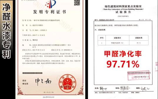 1、大吉净醛水漆专利(专利号 :201811335452X),净醛水漆具有零甲醛,零VOC,并且能够去除甲醛和霉菌的功能,是目前国内环保涂料的天花板;