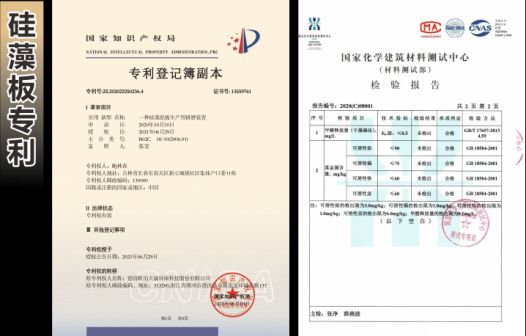 4、大吉硅藻板(专利号:2020222502364)具有高环保性:甲醛等有害物质未检出,因其主要成分为高分子材料和硅藻土,没有木质元素与含甲醛元素,在国内乃至国际板材中环保性是天花板一样的存在,非常适合婴儿房,孕妇房等极端要求环保的空间,硅藻板另一大特性为防水,不怕水,不怕潮湿,在地下室等极端环境,南方梅雨天等极端气候都不会霉变质变,因此硅藻板为真正高端环保板材。