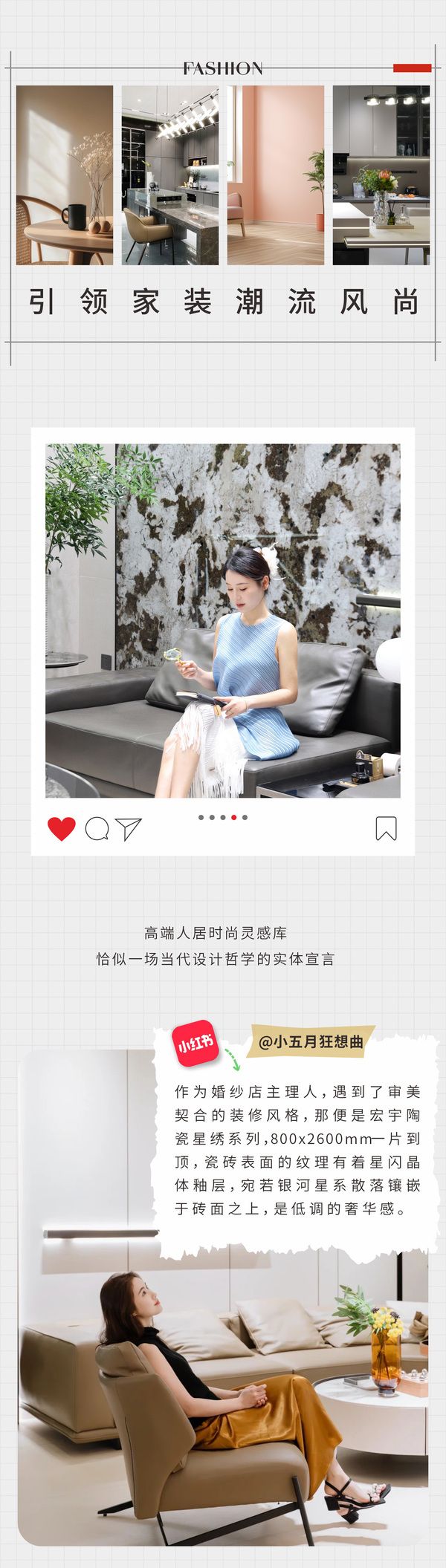 宏宇陶瓷雅奢美学旗舰店,均以“雅奢”为核心设计语言,打破传统瓷砖店的“陈列式”销售模式,转向“生活场景化”体验,已从“卖产品”向“卖生活方式”转型,成为品牌价值的关键载体。展厅内通过“星钻”“星纹”“瑰丽石”等丰富的产品矩阵,融合低饱和度色彩美学与环形动线设计,打造沉浸式家居场景,通过情景化空间组合,使进店客户转化率大幅提升,实现从零售单品到整屋空间方案的跨越,满足奶油风、意式轻奢等主流风格的一站式需求。