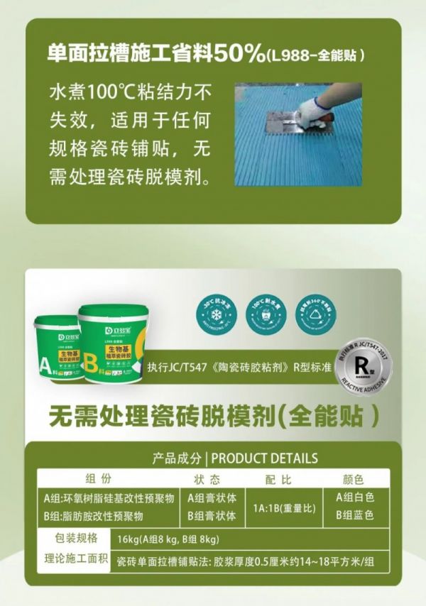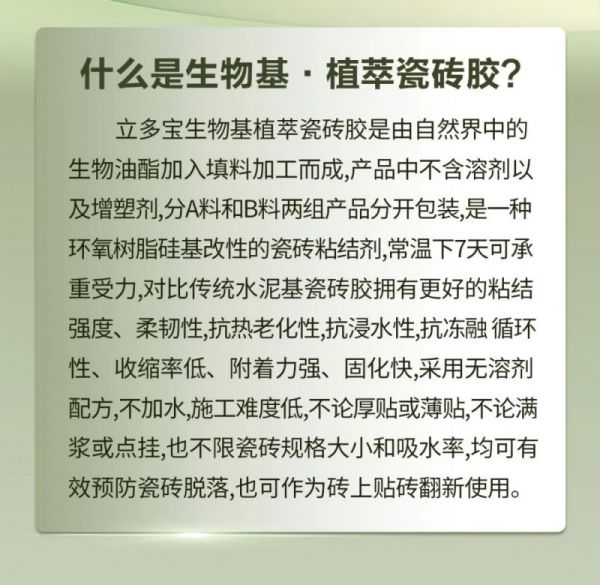 「新品上市」瓷砖胶行业技术革命性产品——“生物基·植萃”瓷砖胶(全能贴