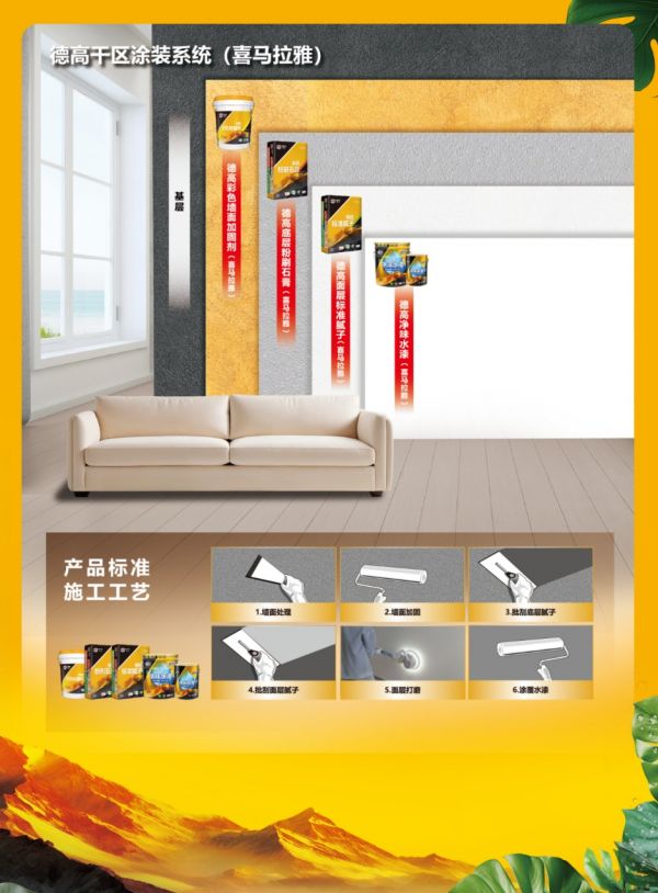 家的美好,离不开一面好墙。「喜马拉雅纳米净醛净味水漆」配套德高一般型腻子,可免底漆施工,省力省料。