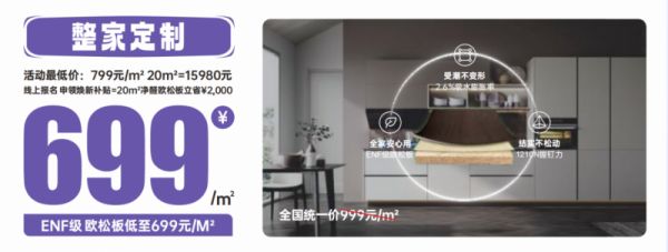 近期要全屋定制的家人们可别错过这波整家定制套餐。ENF级欧松板定制,全国统一价 999元/㎡,活动期间799元/㎡就能拿下,线上报名申领焕新补贴,20m²净醛欧松板15980元,折算下来699元/㎡。环保材质,受潮不变形,结实不松动,装完通风一段时间就能放心用。