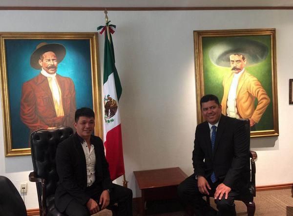 万事红红木总经理蒋龙与墨西哥微凹黄檀原厂地建立合作交流