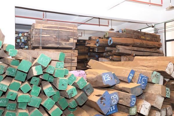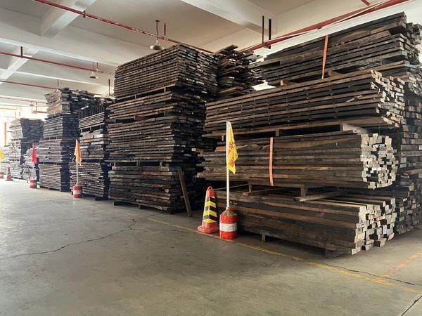 万事红工厂堆放的丰富的墨西哥微凹黄檀大料和老料