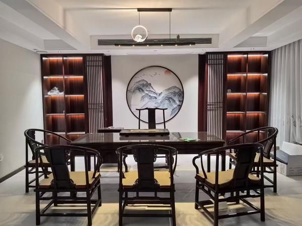 万事红红木墨西哥微凹黄檀茶室空间家具定制