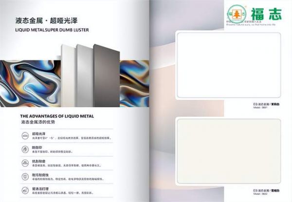 针对现代简约与轻奢风格需求,EB液态金属系列以“超哑光美学”为设计语言,通过液态金属涂层技术打造出接近哑光烤漆的细腻光泽,赋予板材低调而奢华的视觉效果。功能层面,该系列突破传统哑光材质易留痕、难清洁的痛点,表面形成致密抗污层,有效抵御指纹、油渍及化学腐蚀,日常擦拭即可恢复洁净;高硬度涂层更可抵御钥匙、餐具等硬物刮擦,经久耐用。无论是橱柜、衣柜还是护墙板,EB系列均能以优雅姿态融入空间,满足用户对品质与美学的双重追求。