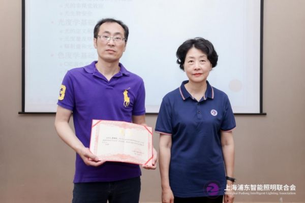 SILA智能照明设计师专委会副秘书长张哲纲博士、上海浦东智能照明联合会秘书长为学员颁发结业证书