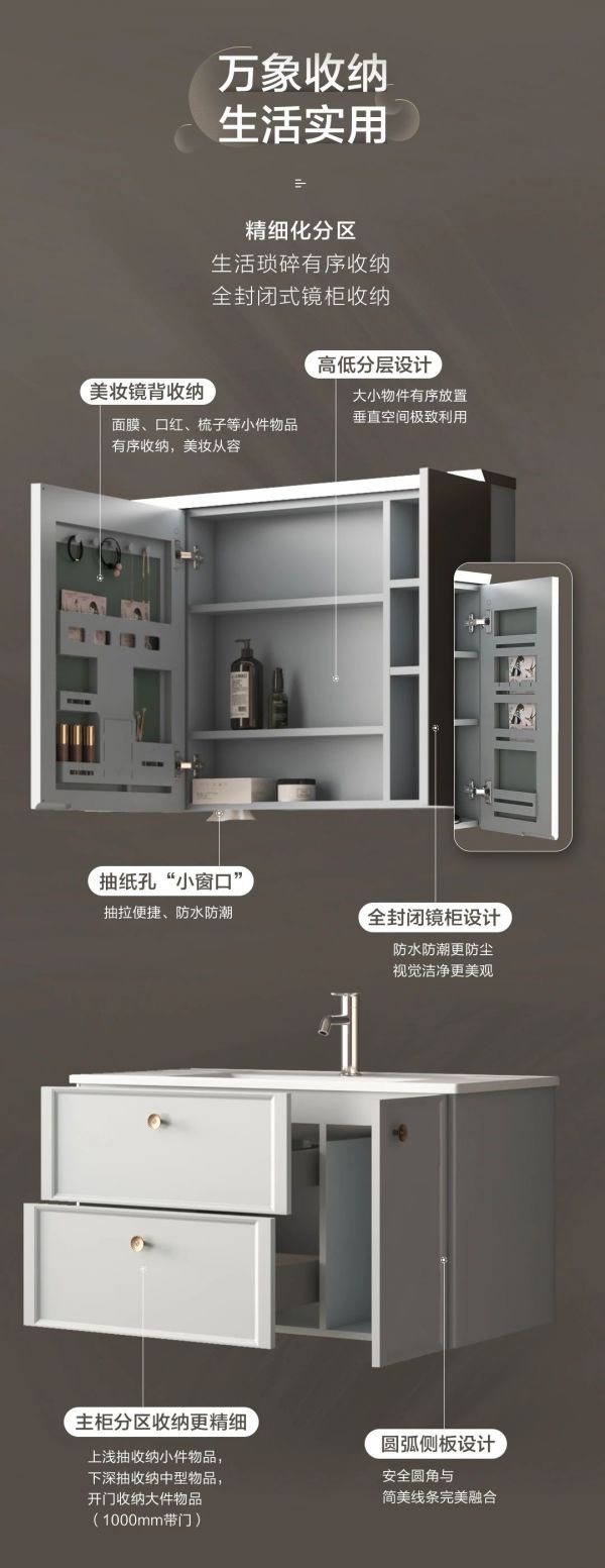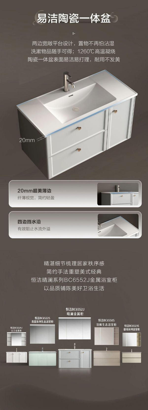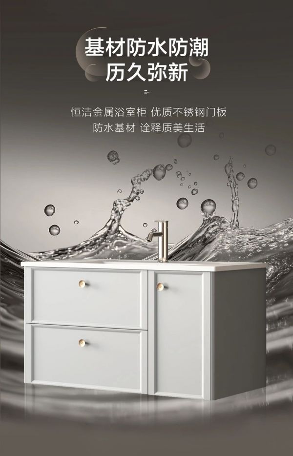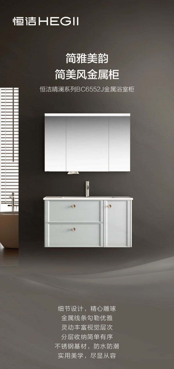 新品上市|恒洁晴澜系列BC6552J金属浴室柜,简约手法重塑美式经典