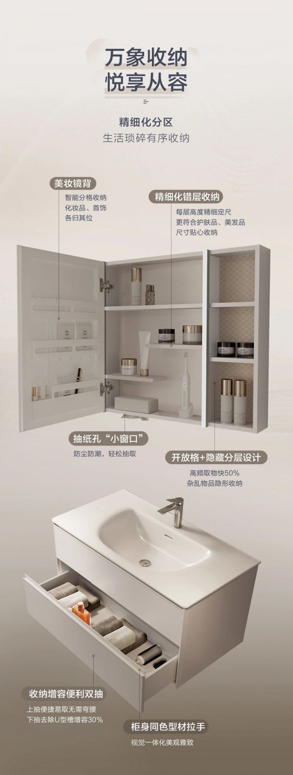 新品上市|恒洁羽枫系列BC6550S生态浴室柜,美妆分区悦享从容
