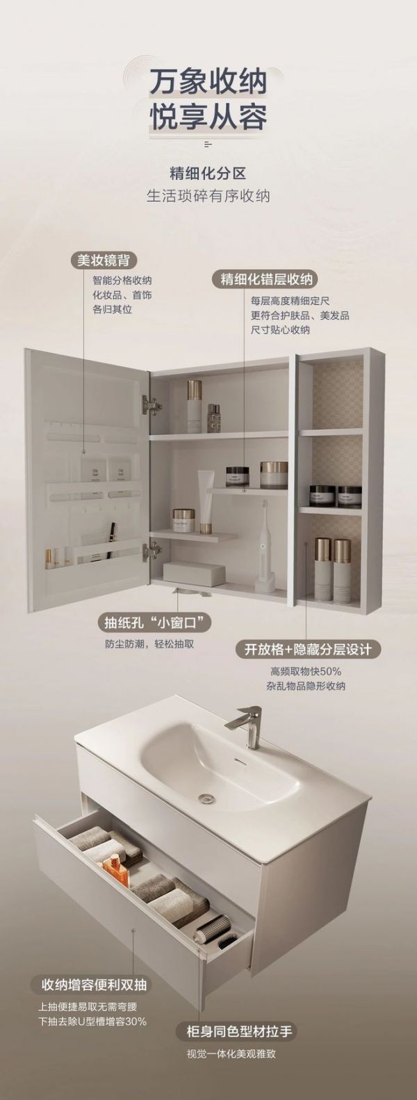 恒洁羽枫系列BC6550S生态浴室柜,美妆分区悦享从容