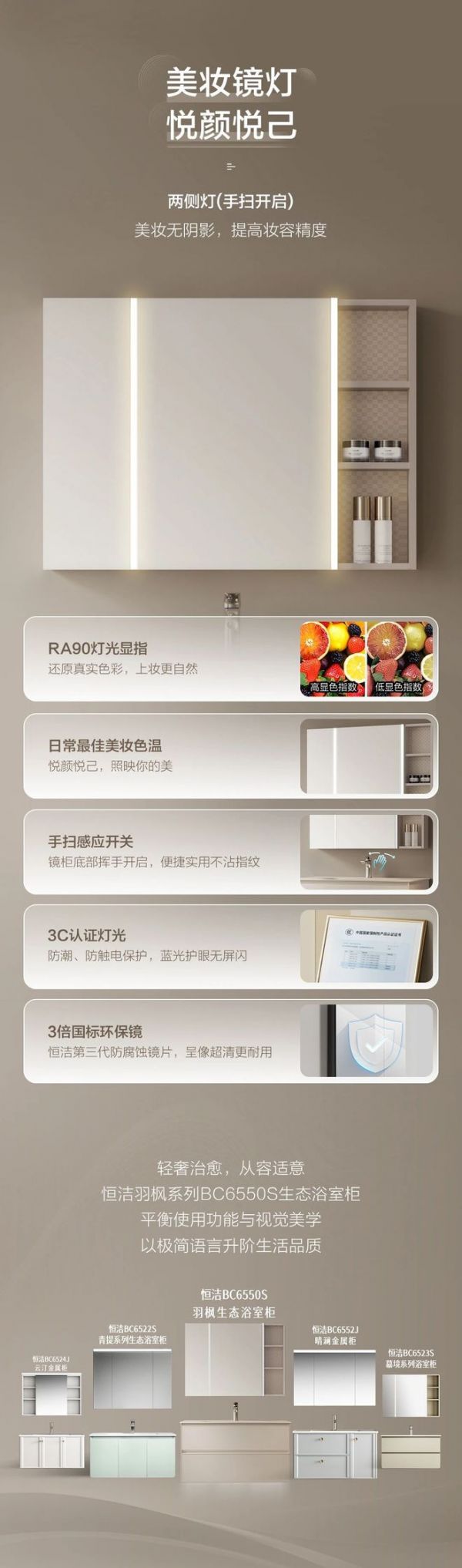 新品上市 恒洁羽枫系列BC6550S生态浴室柜,美妆分区悦享从容