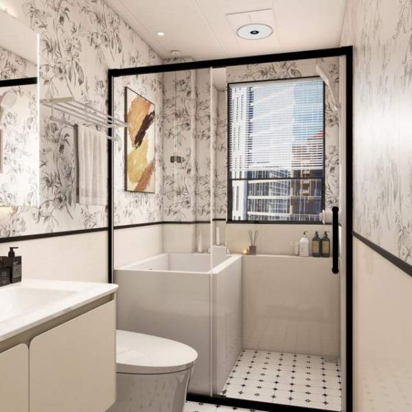 抗菌尼龙材质的安全扶手系统,以人体工程学为基准,在淋浴区与马桶旁构筑起隐形的保护网。这些看似冰冷的金属构件,实则是设计师写给未来的情书——当岁月在掌心刻下皱纹,这些扶手将成为最温暖的依托。折叠座椅的设计更显巧思。平日收起时是极简美学的一部分,展开后则化作舒适的坐浴空间。当银发夫妻相携而坐,温水环绕中,那些被生活磨砺却愈发闪亮的爱情碎片,便在热气氤氲中重新拼合。